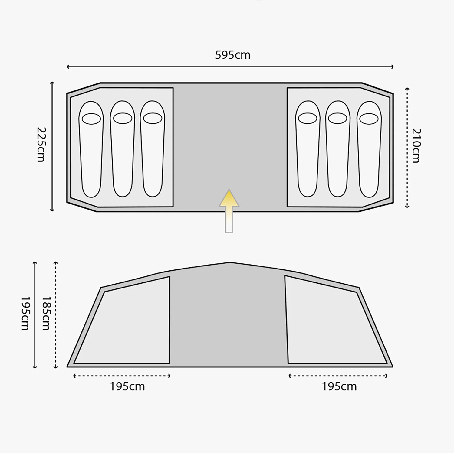 A large family tent for comfortable camping, the Cypress has two separate vis-a-vis sleeping compartments for privacy in the outdoors.