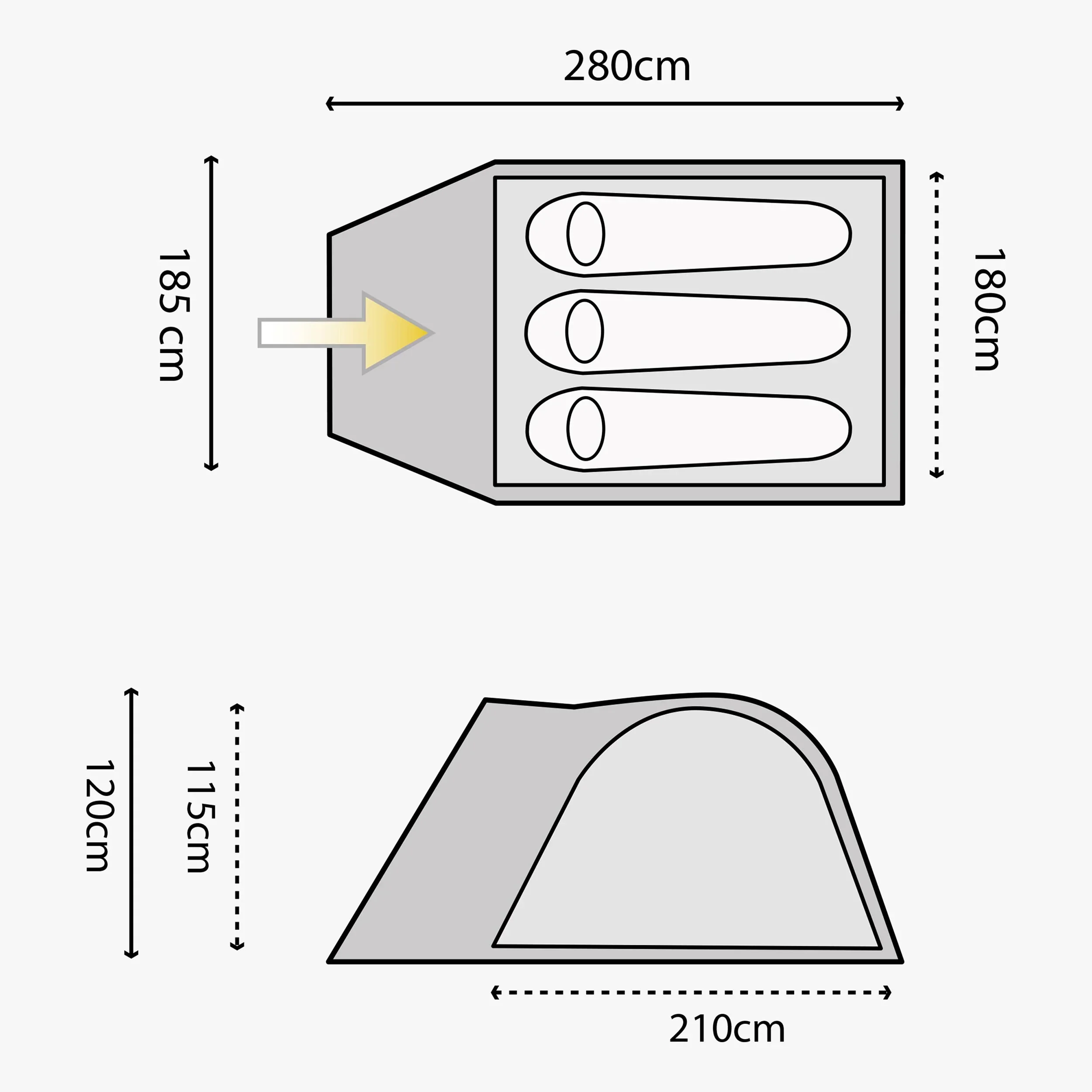• Dimensions: Outer: 280 x 185 x 125cm Inner: 210 x 180 x 120cm